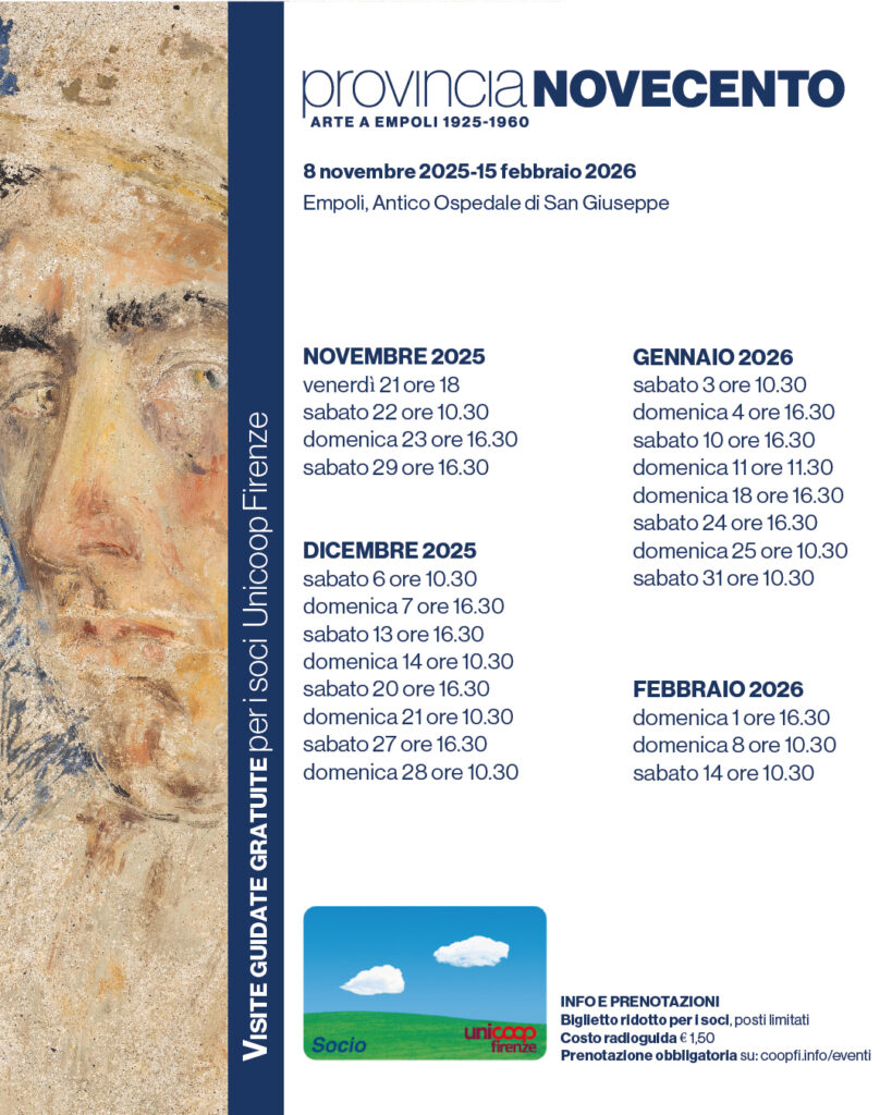 Le prenotazioni sono disponibili qui: https://www.coopfirenze.it/eventi-e-progetti/eventi/visite-gratuite-e-biglietto-ridotto-alla–provincia-novecento—